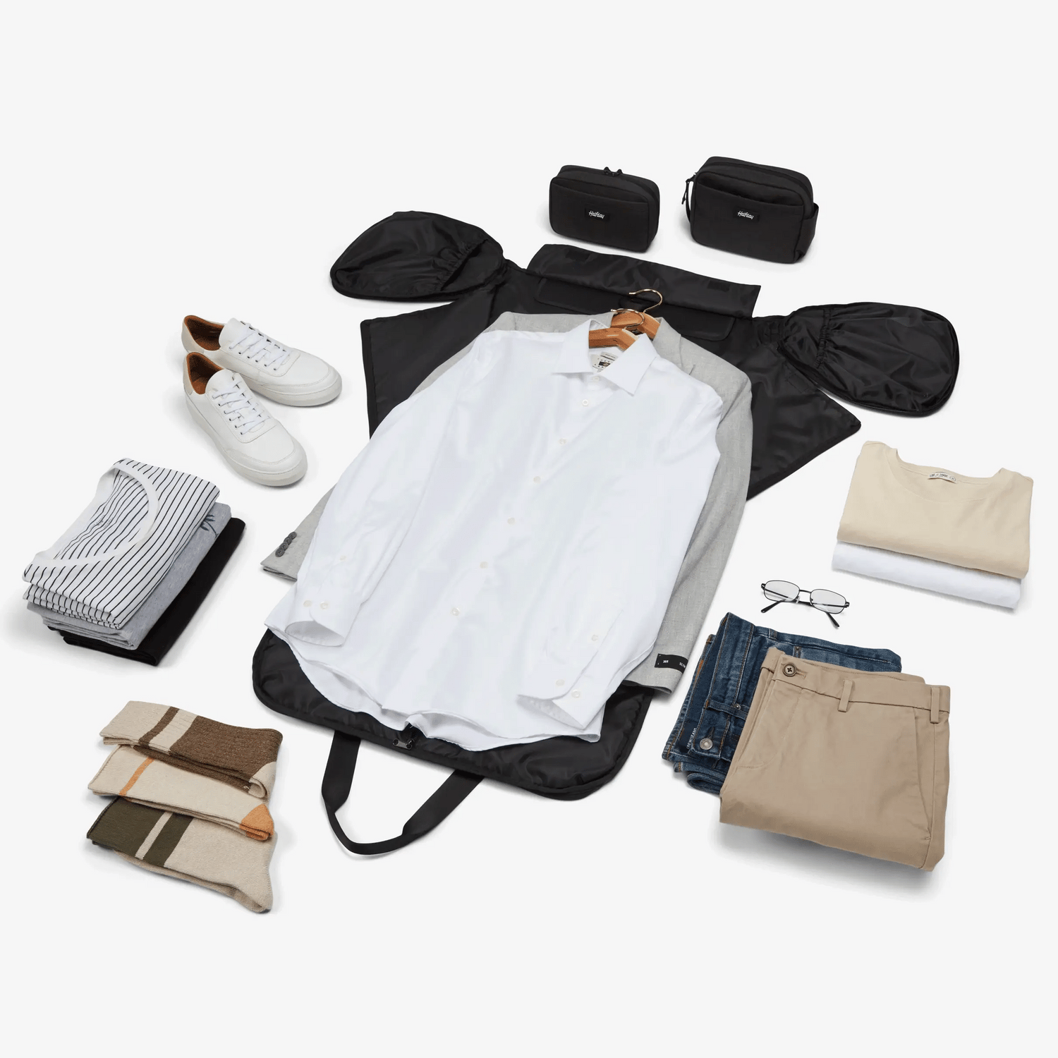 A versatile bag that keeps your suit, shirts, or dress wrinkle-free while offering the convenience of a duffel for your shoes, folded clothes, and accessories.